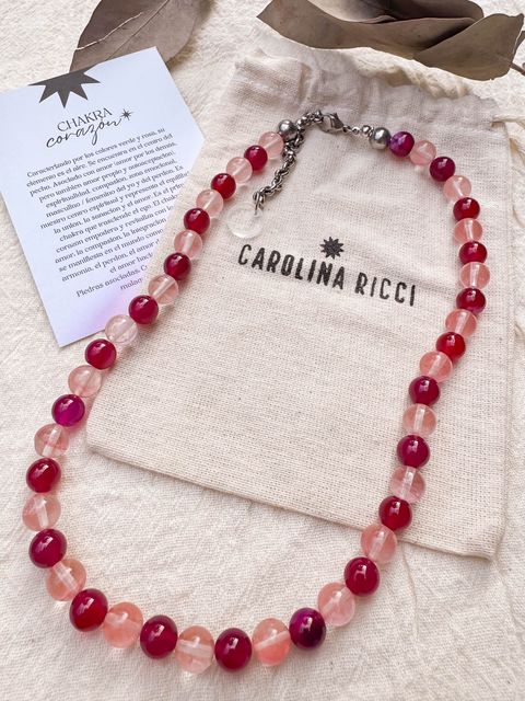 Collar Emperatriz - Ágata fucsia y cuarzo cherry