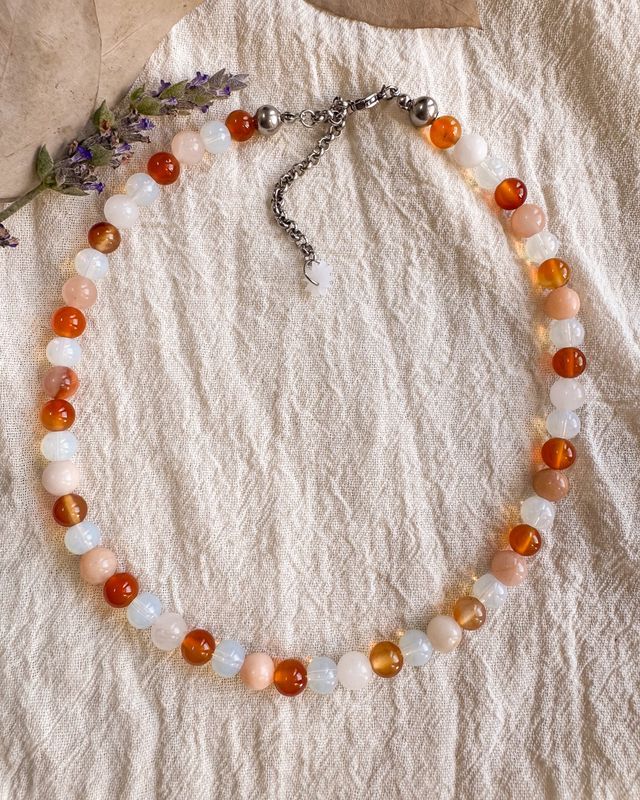 COLLAR EMPERATRIZ - CORNALINA, JASPE DURAZNO Y OPALINA