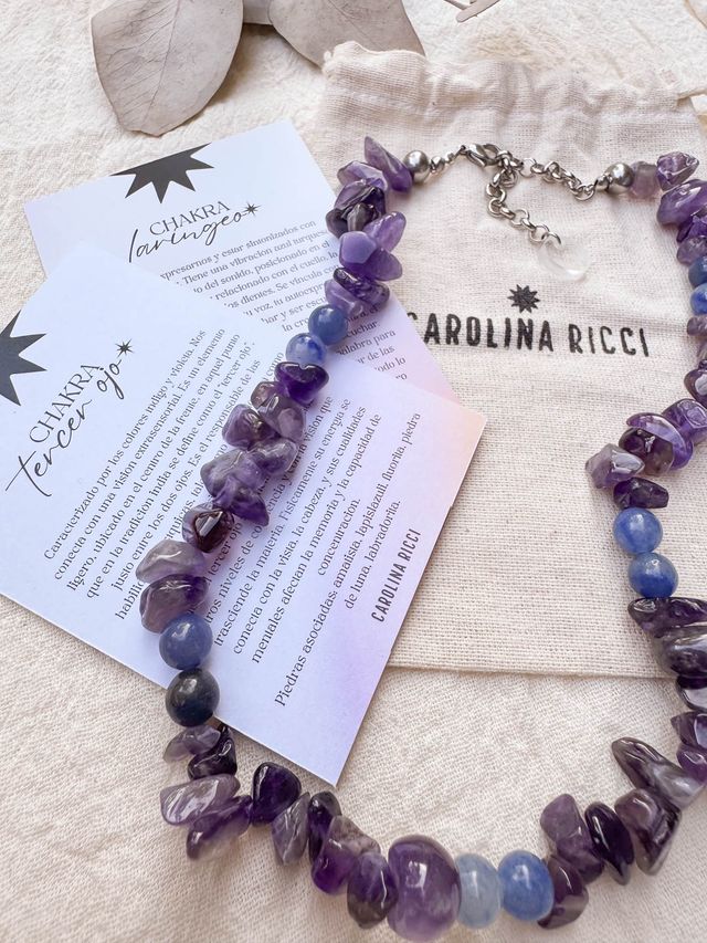 Collar Magia - Cuarzo azul natural y escallas amatista
